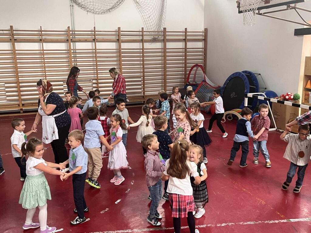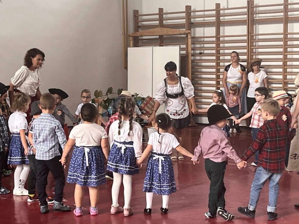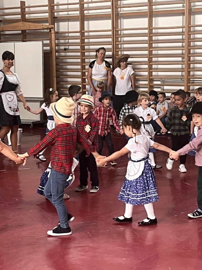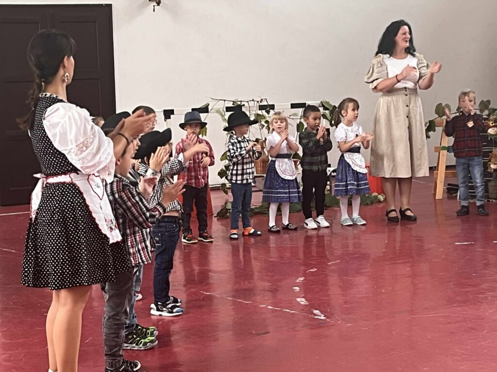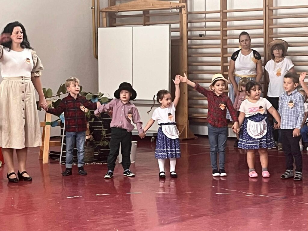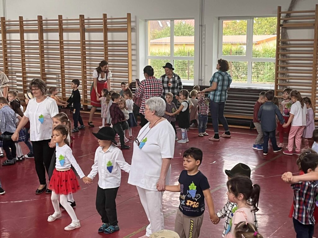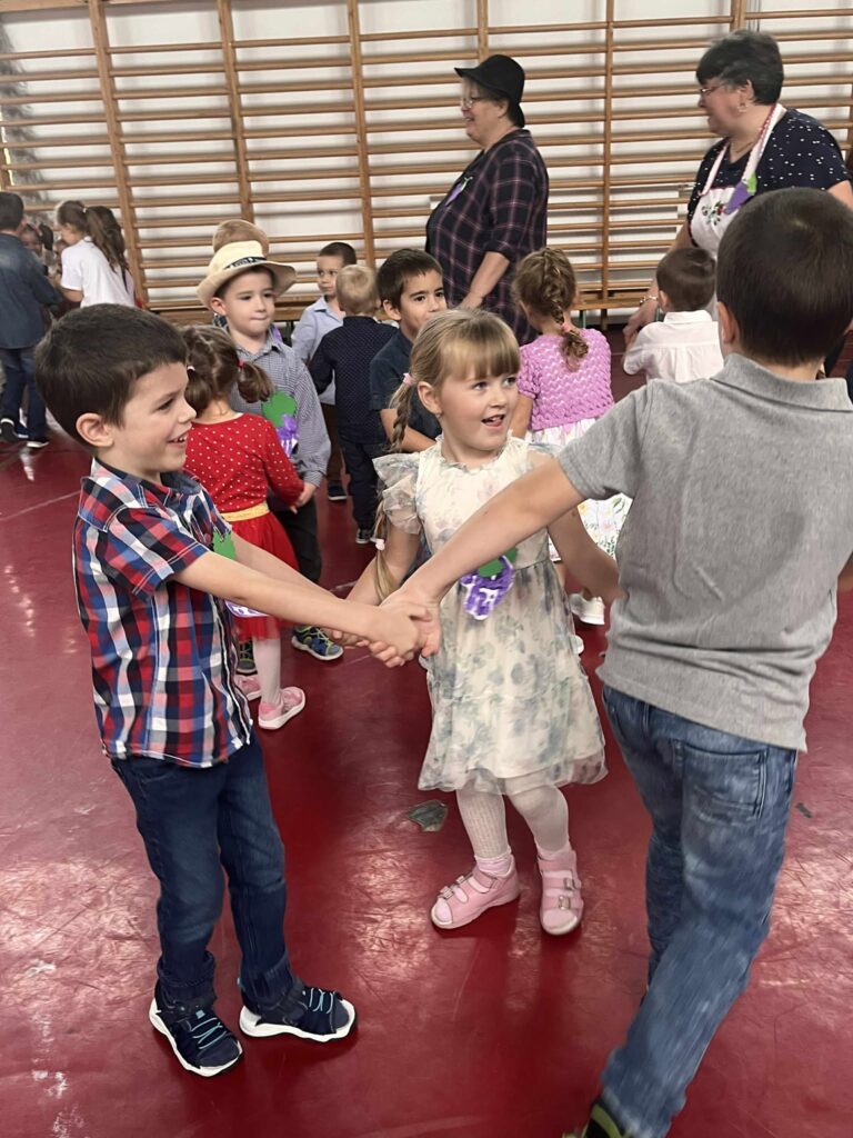 A kis „méhecskék” ügyesen szerepeltek, műsorukban helyet kapott több szüreti versike, köszöntő, az eseményhez kapcsolódó, mozgással kísért dalocskák és körjáték. Szereplésüket követően az óvodapedagógusok közös énekléssel színesítették a rendezvényt, majd mindenki táncra perdült a jobbnál jobb népi muzsikákra, szebbnél szebb népies ruhákban.