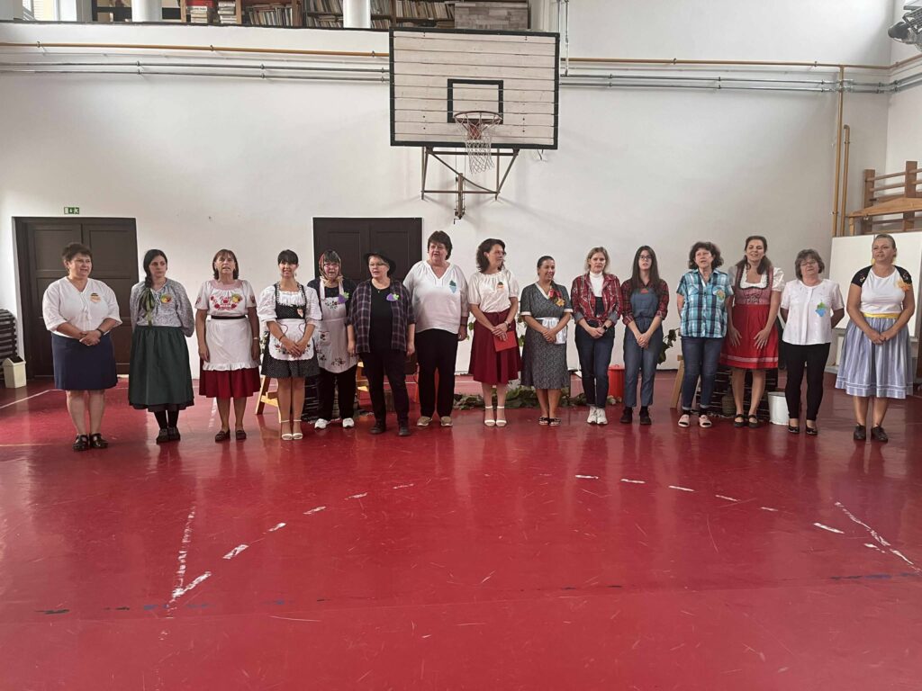 Az esős, borongós idő ellenére vidám hangulatban, sok nevetéssel, közös tánccal zajlott a szüreti vigasságunk, mindenki jól érezte magát!