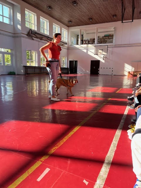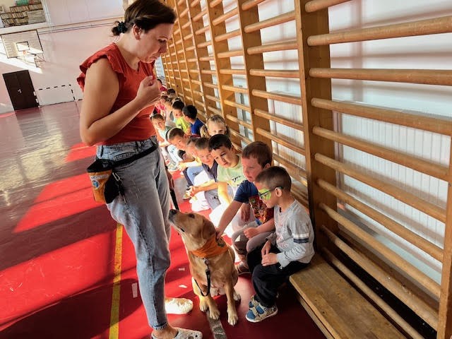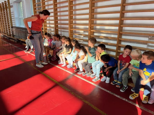 A foglalkozás során a gyerekek játékos, mozgásos feladatokon keresztül ismerkedhettek meg a felelős állattartással, a kutyák viselkedésével és a velük való helyes bánásmóddal. Ella türelmesen és lelkesen vett részt minden feladatban, így a kicsik testközelből tapasztalhatták meg, milyen öröm és felelősség egy állat közelsége.