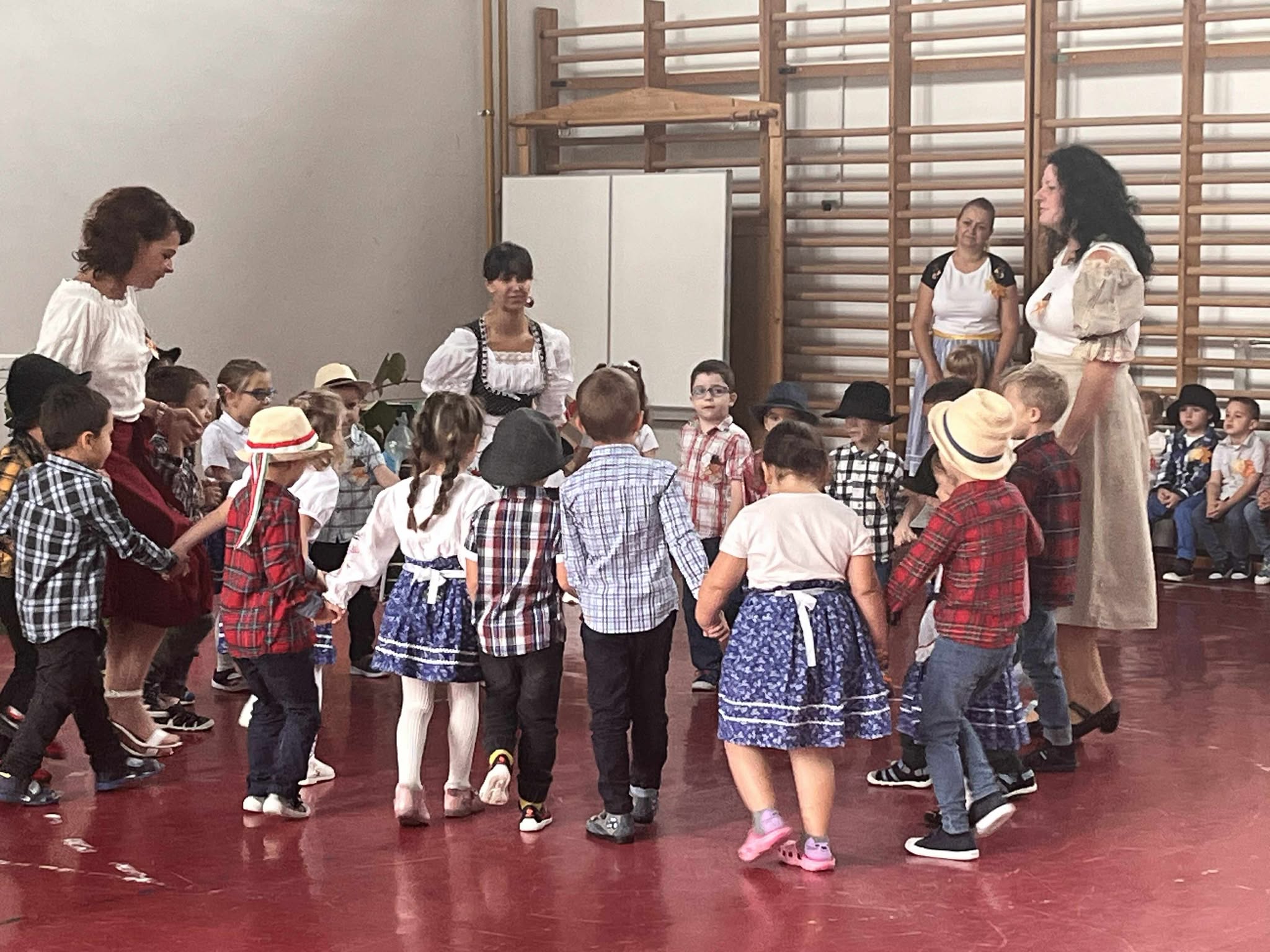 A kis „méhecskék” ügyesen szerepeltek, műsorukban helyet kapott több szüreti versike, köszöntő, az eseményhez kapcsolódó, mozgással kísért dalocskák és körjáték. Szereplésüket követően az óvodapedagógusok közös énekléssel színesítették a rendezvényt, majd mindenki táncra perdült a jobbnál jobb népi muzsikákra, szebbnél szebb népies ruhákban.