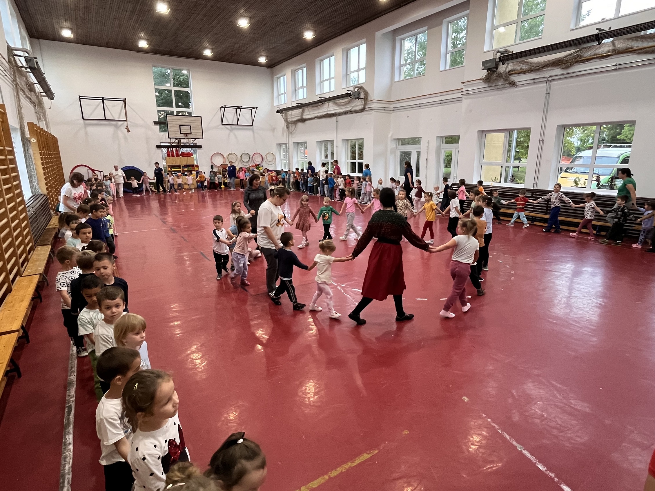 Idén először vettünk részt a Népi játék napja alkalmából egy saját szervezésű táncházban. Mindig is fontosnak tartottuk, hogy óvodásaink ismerkedjenek meg minél több népi játékkal, hiszen a magyar kultúra szerves részét képezik. Ezenkívül bizonyított ezek pozitív fejlesztő hatása a személyiség minden területére. A legkisebbek ölbeli játékán keresztül a nagyobbak futó-fogó, virtuskodó, párválasztó játékáig, széles a skála. Sokat alkalmazzuk az „Ígyteddrá!” program dalanyagát, mondóka anyagát, énekes körjátékait. Ezek nagyon élvezetesek a gyerekek számára. Nem volt kérdés, hogy idén mi is csatlakozunk az országos felhíváshoz, és megszervezzük e táncos napot. Az összes óvodásunk a tornateremben nagy kört alkotva táncolt a jó hangulatú népzenékre, a Maci csoport óvodásainak és óvodapedagógusainak vezetésével és bemutatásával. 4-5 dalt tanulhattak meg ily módon, a hozzá tartozó népi játékokkal. Remek hangulatú és nagy élményt jelentő nap volt mindannyiunk számára. A jövőben is folytatjuk!